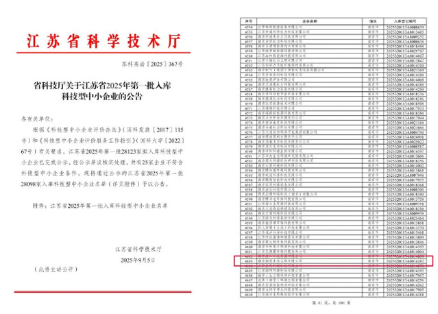 近日,江苏省科学技术厅公布了2025年第一批入库科技型中小企业名单。必赢3003no1线路检测中心南京市园林经济开发有限责任公司全资子公司——南京润园生态工程有限公司(以下简称“润园公司”)成功入选首批名单,成为南京市科技型企业队伍中的新生力量。
