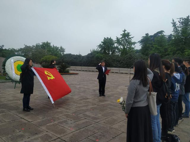 在雨花台烈士纪念碑下,全体人员整齐列队静默肃立,鞠躬默哀,表达对烈士们的崇高敬意和深切悼念之情。党员们面向党旗举起右拳庄严宣誓,重温入党誓词,并集体瞻仰烈士纪念碑,为英雄烈士们献上花束表达敬意。