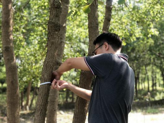 近期“秋老虎”发威,炎炎烈日、骄阳似火,林中蚊虫叮咬,地面起伏、时有沟壑。但没有一个人叫苦喊累,认真的用树尺测量每一棵苗木,并详细记录。至太阳西下,大家用脚丈量了500多亩田地,测量了10000余株苗木。“往年两期的苗木盘点,我要盘四五天才能盘点完,现在有大家的帮忙,不到一天就完成了,工作效率大大提高了。”苗圃负责人高兴地说。