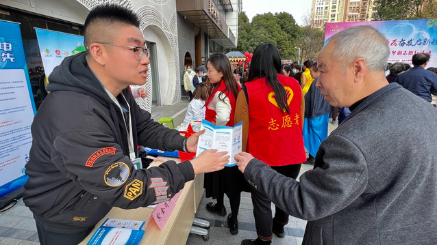 公司党支部在紫金1912·玖爱谷广场内搭设爱心摊位,开展家庭安全知识普及志愿活动。