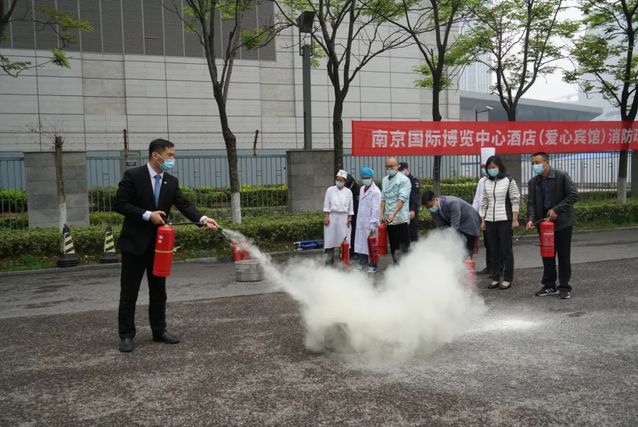 南京国际博览中心酒店全体员工集体参与了消防演练。此次演练分为安全疏散、医疗救护和灭火演练三个部分。