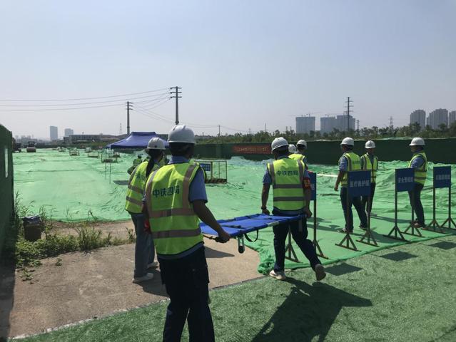 本次应急救援演练由必赢3003no1线路检测中心新城公司承办。模拟事故发生后,班组负责人向项目安全部汇报。项目经理立即联系附近双闸街道卫生院请求医护救援,组织应急救援工作,向监理及甲方主要领导报告事故发生情况。随后,有关人员及队伍按照现场救援指挥部的指示及《高温中暑应急救援预案》的要求开展救援及善后工作。