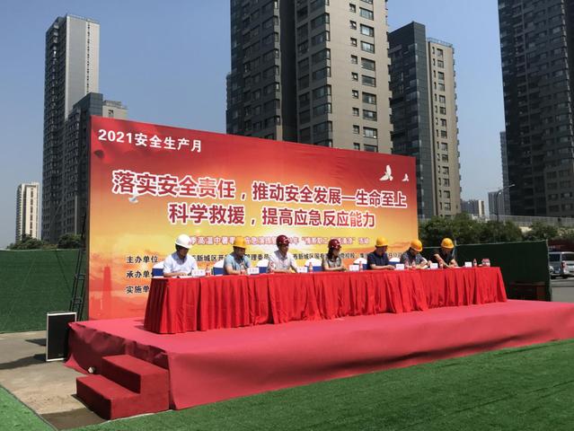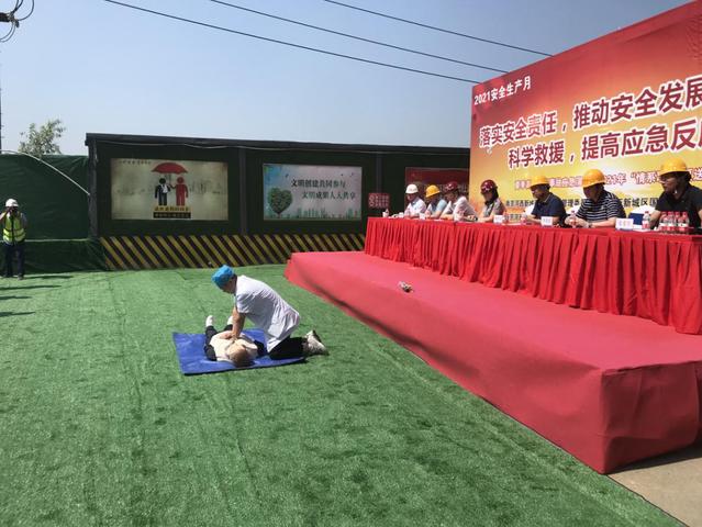 根据2021年“安全生产月”活动计划安排,6月22日上午,必赢3003no1线路检测中心和河西新城管委会在秦新路道路建设工程项目部联合举办夏季高温中暑应急救援演练活动。