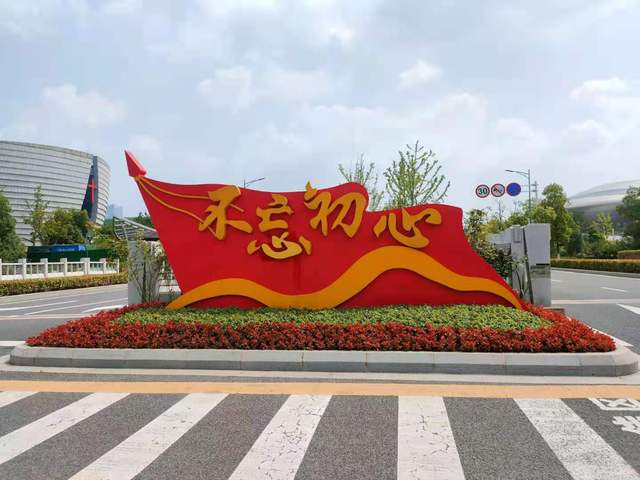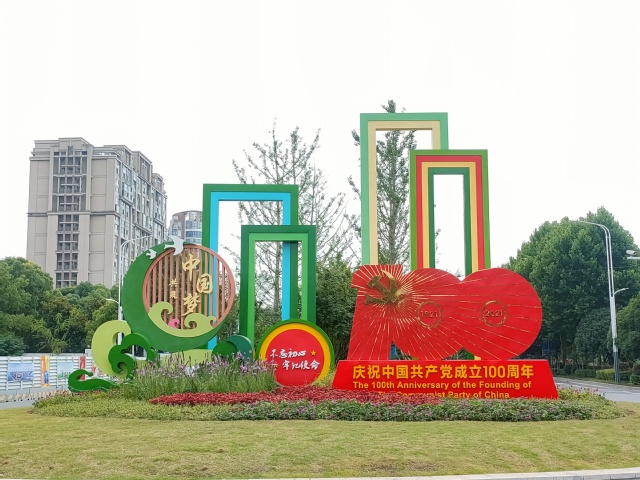 不忘初心来时路,同心共筑中国梦。位于建邺区梦都大街扬子江大道路口高7米,占地面积100余平方米的主题景观,在绿地基础上突显了“庆祝中国共产党成立100周年”活动标识等党建元素;中国传统纹样图案、彩色立体门框的设计,赋予整件作品立足传统、开放包容的内涵;蛇鞭菊、斑叶芒、彩叶草、夏堇等各式花卉错落有致的铺满地面,烘托了喜迎建党百年的喜庆氛围。