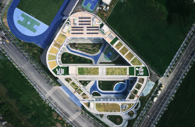项目以建造智慧校园为目标,智能化设计中将一体机、投影仪、信息发布机等与学校内部教育系统有机结合,打造校园智能教学系统。公共区域的设备及管线采取成型 U-PVC 保温外壳及新型钢管支架技术等防撞措施,减轻碰撞伤害同时兼具美观。