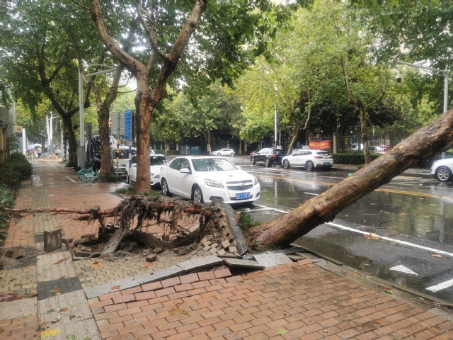 上周末,伴随强冷空气来袭,我市出现阴雨和大风降温天气。10月16日中午,位于建邺区螺丝桥大街西侧滨江小区附近的一棵胸径约40公分,重达4.3吨的法桐无力承受风雨侵袭出现倒伏,给过往车辆及行人带来极大的安全隐患。