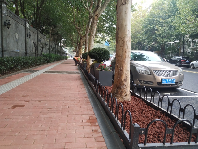 其次,进一步提升了道路景观,树池布局的创新,组合花境的布置,体现了道路整体的美观性。同时,从植物生长和保护的角度,对法桐的根系进行生长引导,促使其纵向生根,起到稳固树干、减少道路破坏的作用,降低树木倒伏几率,减少道路安全隐患。