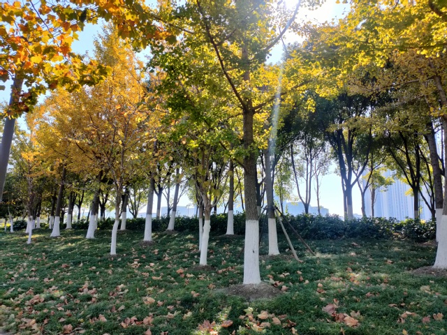 对树木进行刷白是冬季园林绿化养护管理的一项重要工作,树木刷白主要有两个作用:一是防冻,用石灰浆涂白后可以降低树干昼夜温差,减轻树木冻害;二是防止虫害,石灰浆和硫磺等具有杀菌作用,可以有效地防止虫害,为树木来年萌发打基础。