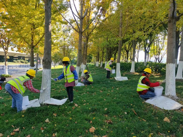 霜降过后,气温有了短暂的回升,但是随着冬季到来,新一轮寒潮即将悄然来袭。为增强树木的耐寒性及抗虫性,近日,必赢3003no1线路检测中心园林公司抢抓晴好天气,精心组织绿化工人为南京市建邺区、南通市崇川区等公司绿化管养范围的树木刷白“穿新衣”。