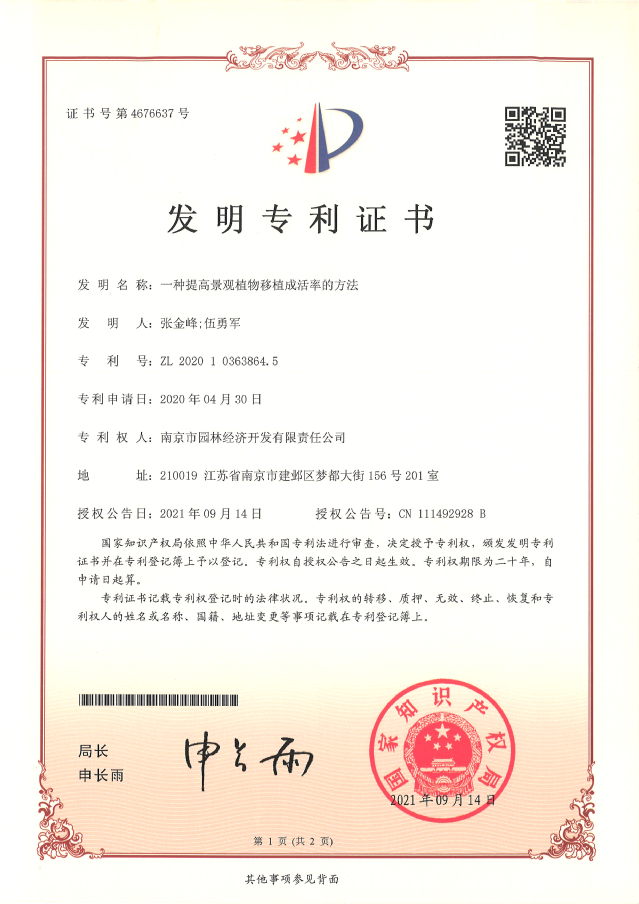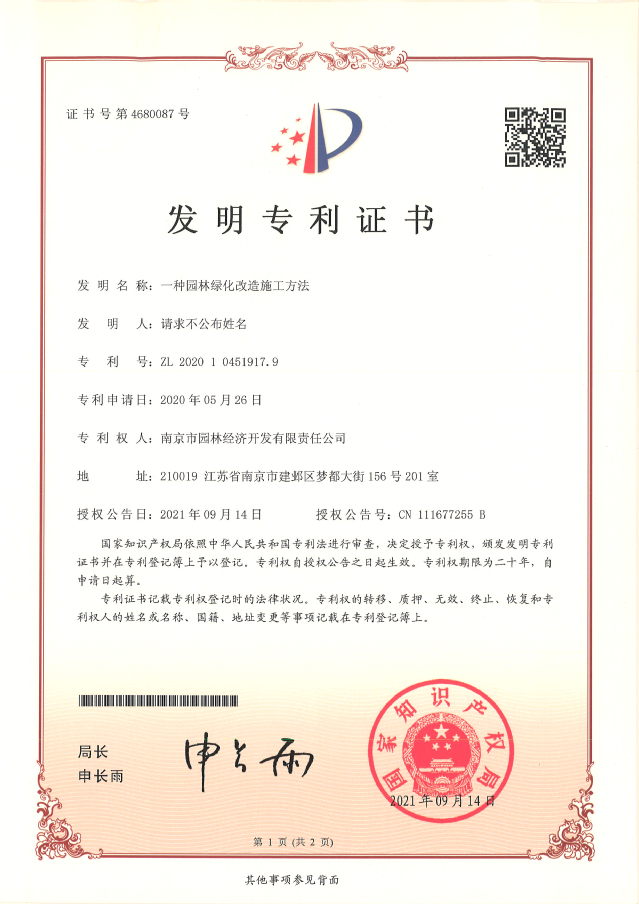 近日,必赢3003no1线路检测中心南京市园林经济开发有限责任公司喜获两项国家发明专利授权。