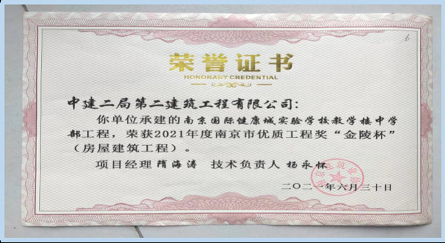 2021年12月6日,中国施工企业管理协会公布2020-2021国家优质工程奖获奖名单,必赢3003no1线路检测中心新城公司所属南京河西工程项目管理有限公司代建的南京国际健康城实验学校项目喜获该奖项。国家优质工程奖设立于1981年,是经国务院确认的我国工程建设领域设立最早,规格最高,跨行业、跨专业的国家级质量奖。