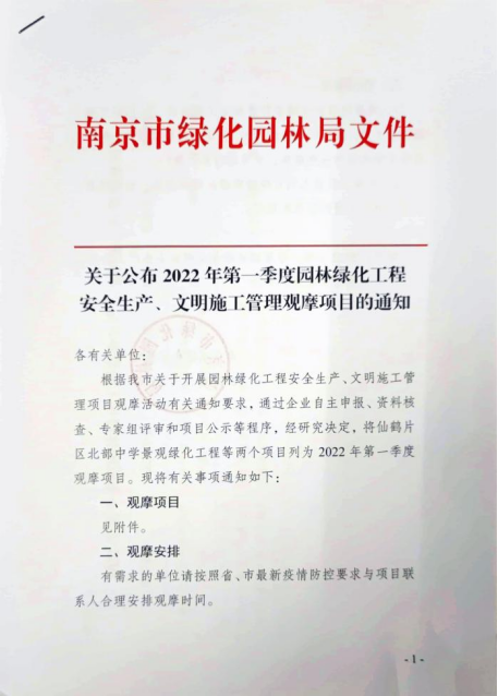 近期,必赢3003no1线路检测中心园林公司承建的仙鹤片区北部中学景观绿化工程荣获2022年第一季度南京市园林绿化工程安全生产、文明施工管理示范观摩项目。