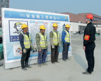 本工程施工范围广、涉及专业多,交叉施工影响大,安全文明管理难度高。为此项目部精心组织、科学策划,从开展安全教育,提高全员安全意识着手,将安全教育工作常态化。并且严格实行工程安全技术交底制度、定期组织应急演练、施工现场设置醒目的安全警示标志,时刻提醒工人安全生产、规范作业。