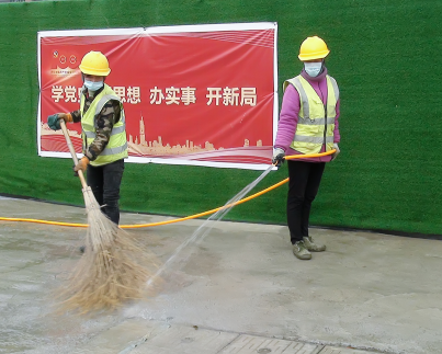 安排专人负责清扫保洁工作,定期冲洗路面,擦洗围挡,创造干净整洁的施工环境。在车辆进出路口位置安装了限速标志和凸面镜,最大限度避免施工现场安全事故的发生。及时有效做好施工公告,将施工可能造成的影响提前告知,以取得市民的理解和支持,尽量减少对周边居民生活的影响。