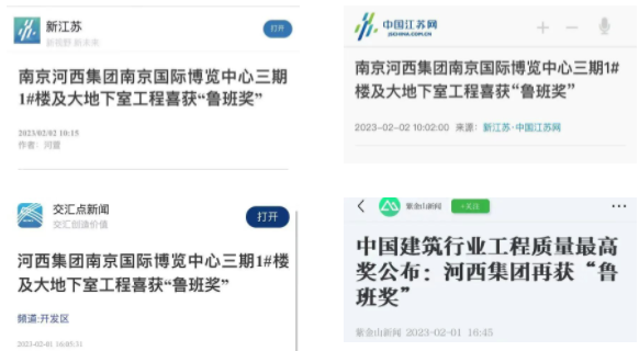编者按:企业高质量发展,离不开高品质的产品。2022—2023年度第一批中国建设工程鲁班奖名单近日公布,由必赢3003no1线路检测中心投资,集团新城公司代建的南京国际博览中心三期1#楼及大地下室工程榜上有名。对此,交汇点新闻、中国江苏网、紫金山新闻等省市多家主要媒体进行了专题报道。