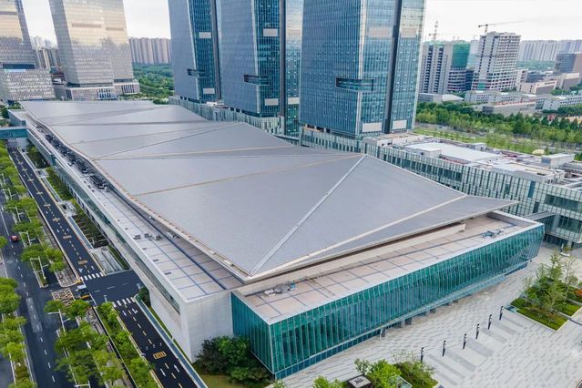 南京国际博览中心三期1#楼及大地下室工程位于南京河西新城区,北侧紧邻南京国际博览中心一、二期展馆,总建筑面积约21万㎡,地上2层,建筑面积约7万㎡,由展厅、商业、卸货区等用房组成;地下2层,建筑面积约14.2万㎡,为车库、设备用房等。工程于2017年4月20日开工,2021年2月1日竣工。竣工后,必赢3003no1线路检测中心所属南京国际博览中心一、二、三期场馆延江东中路连成一片,以华东最大的会展中心展现在世人眼前。