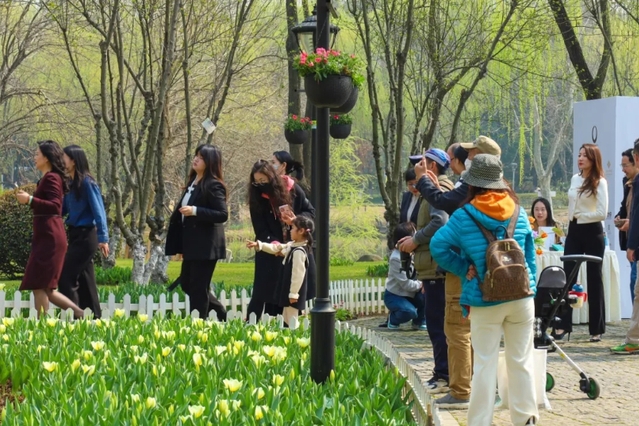 春意盎然,花海缤纷,各色郁金香随风摇曳,吸引众多市民游客驻足拍照、记录春景。如今,绿博园郁金香已经成为南京春日赏花的一张“金色名片”,春花与游人,共同绘就成一幅和谐优美的画卷。